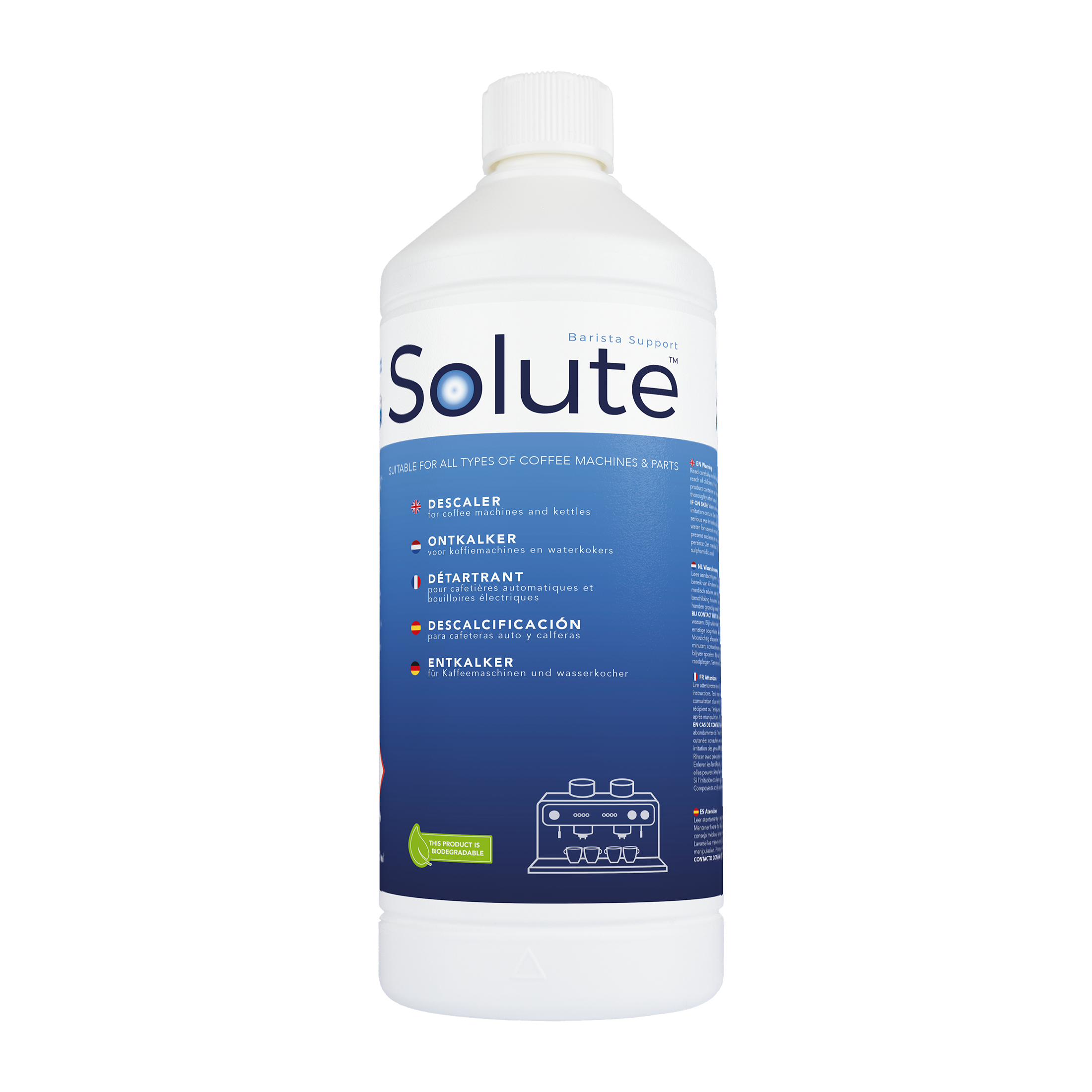Solute ontkalker is geschikt voor alle typen koffiemachines en waterkokers.