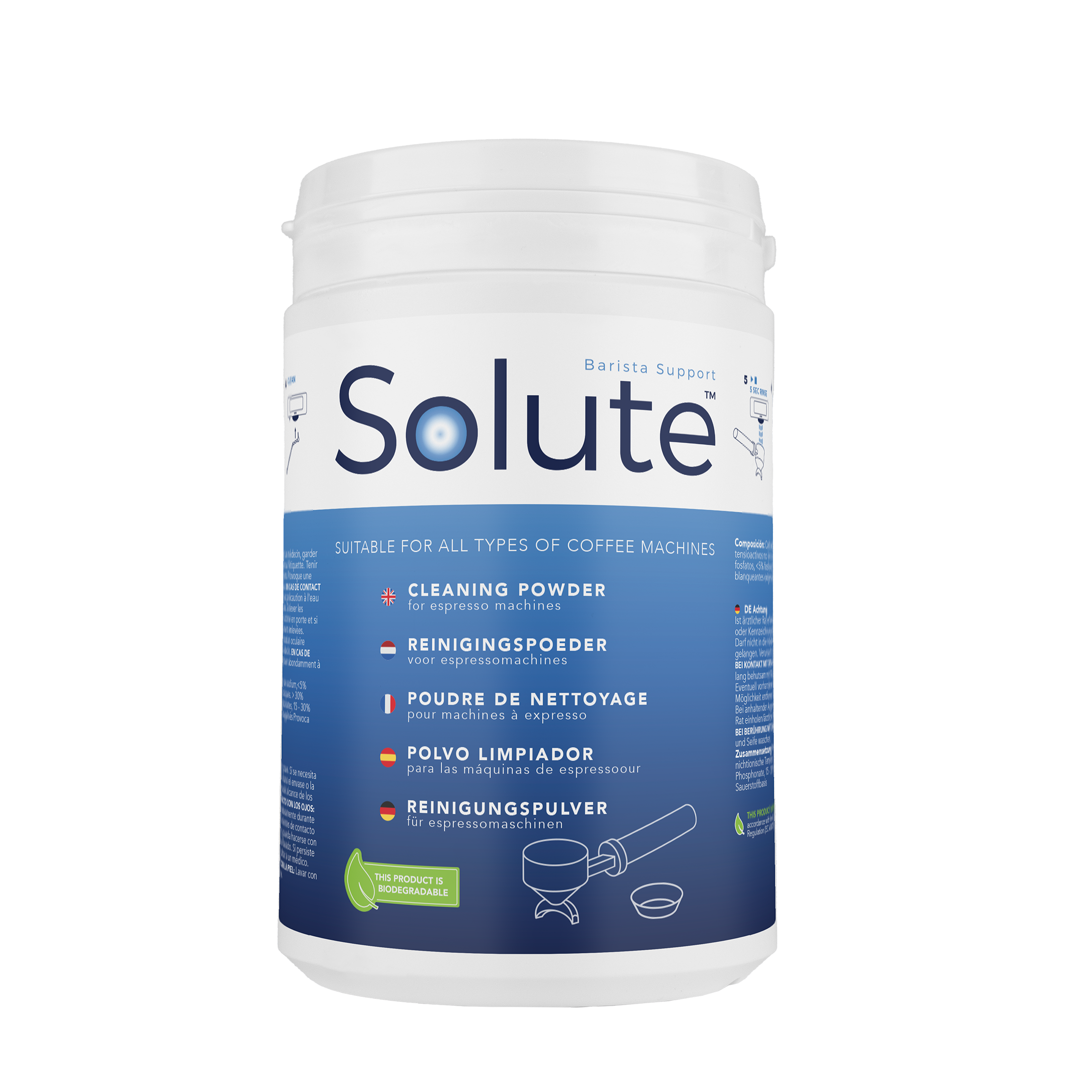 Solute™ reinigingspoeder is speciaal ontwikkeld voor het reinigen (blindfilteren) van half automatische espressomachines. De speciale reinigingsformule verwijdert koffievetten en resten in de koffiegroep, ventielen, kleppen en leidingen. Solute wordt aanbevolen voor gebruik met een breed scala aan traditionele espressomachines. Het reinigingspoeder is ook zeer geschikt voor het reinigen van de filterdragers. Dankzij de krachtige formule is 4 à 5 gram voldoende voor een reinigingsbeurt.