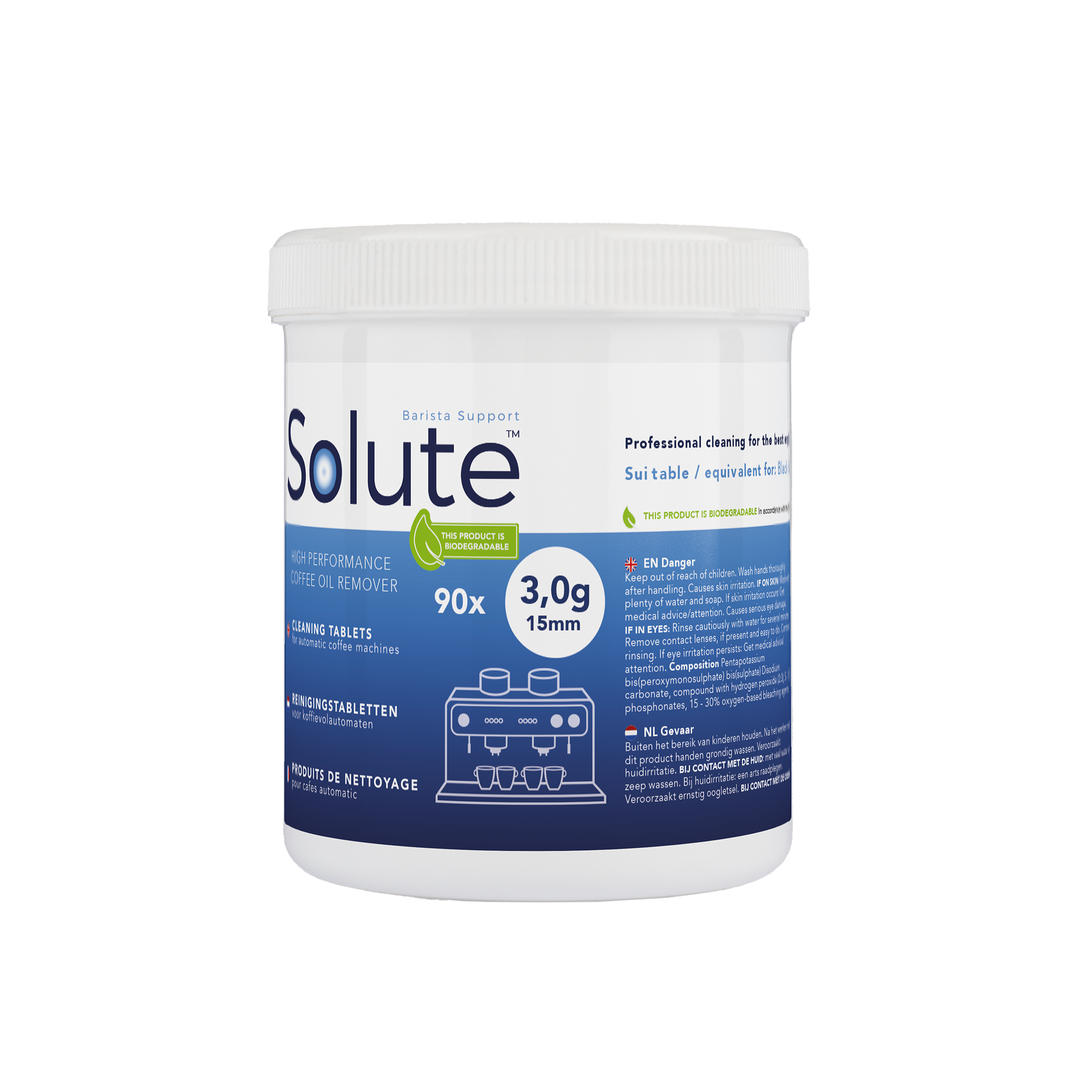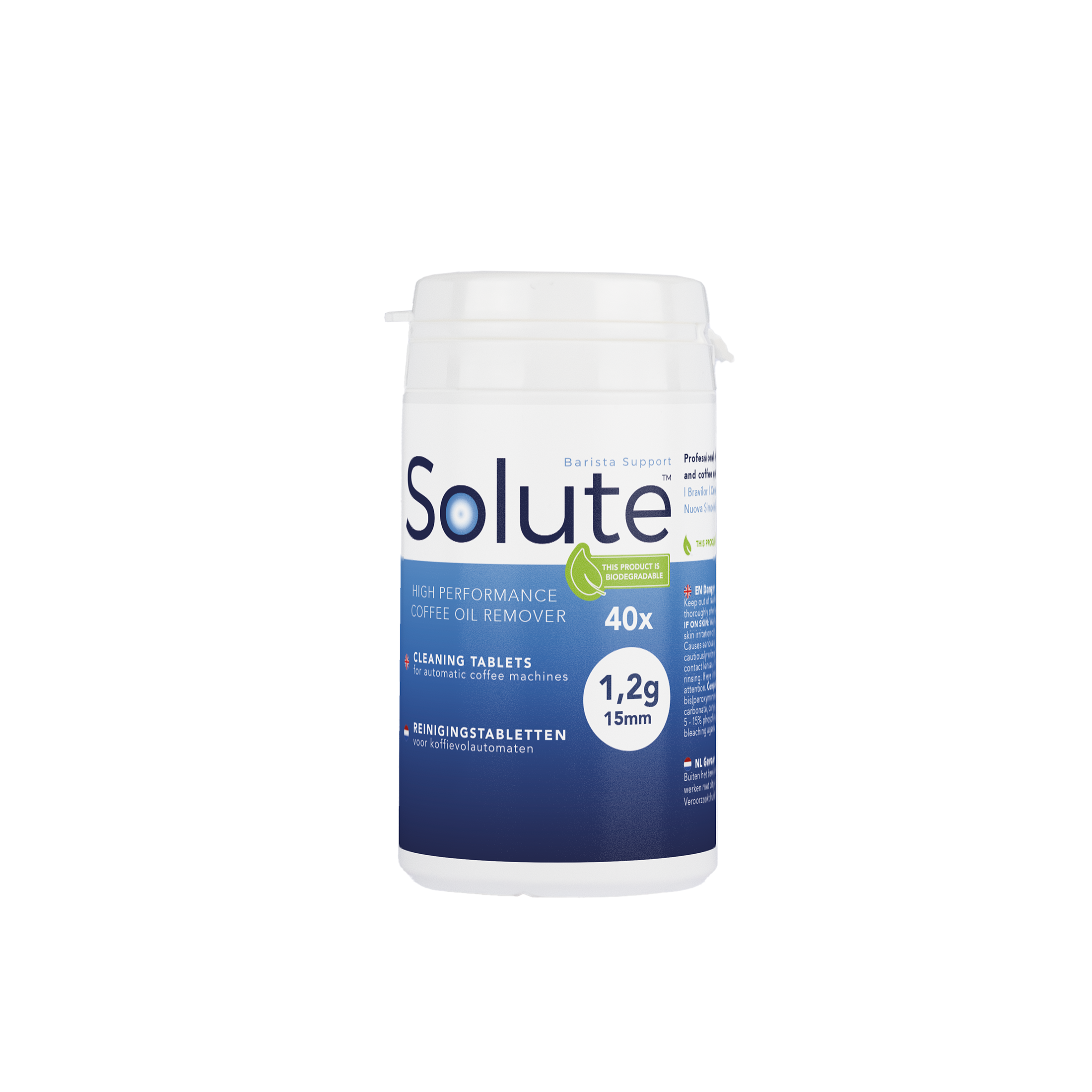 | 9590 | Solute reinigingstabletten 120x 1,2g Ø15mm | Equivalent voor o.a. Aeguator | Astoria | Bravilor | Carimali | ECM | Sage | Schaerer | WMF Presto etc. | € 29,95 | | solute | reinigingstablet solute-alle |